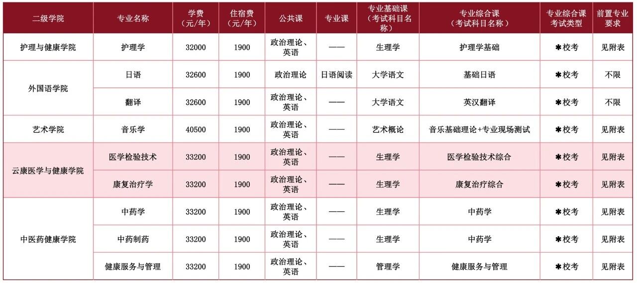 2026年普通专升本拟招生专业普通批(校考)