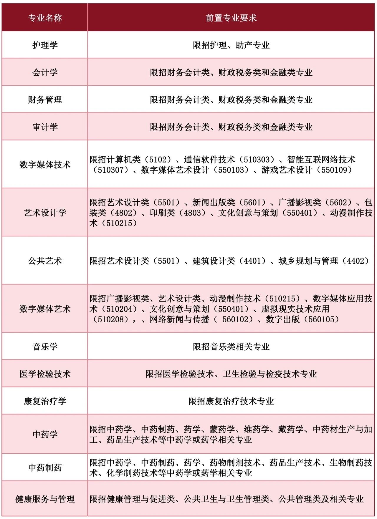 附表-前置专业要求